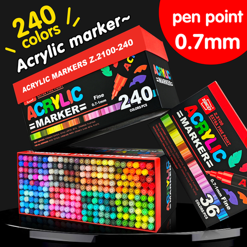 Nouveau 240 couleurs pointe fine à base d'eau Non toxique pour pierre roche métal plastique peinture acrylique peinture marqueurs stylo