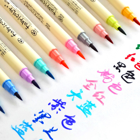 10 renkler/set Fabricolor dokunmatik yazma fırça kalem Renk Kaligrafi işaretleme kalemleri seti çin kırtasiyesi Çizim sanat Okul malzemeleri